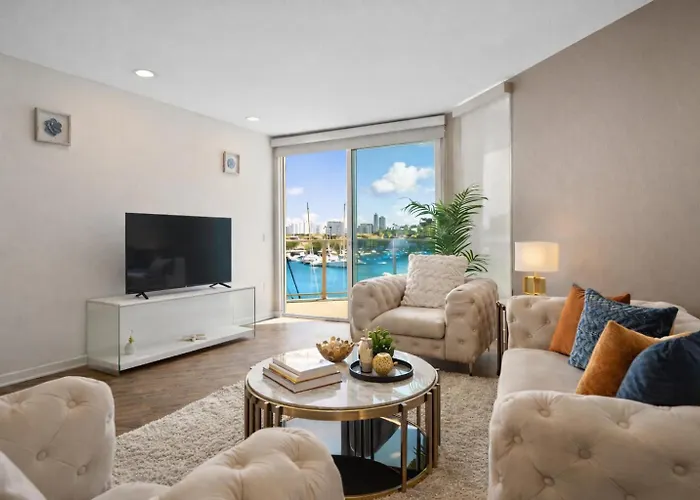 Os quartos têm vista para o rio. O apartamento Venice Marina Water Front Luxury Condo tem 3 camas.